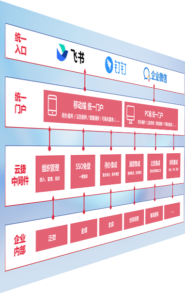 对协作平台提供支持服务,,支持企业应用与协作平台对接,,,,包含组织同步、、、消息集成、、、待办集成等。。支持目前主流的协作平台:钉钉、、、企微和飞书。。。
